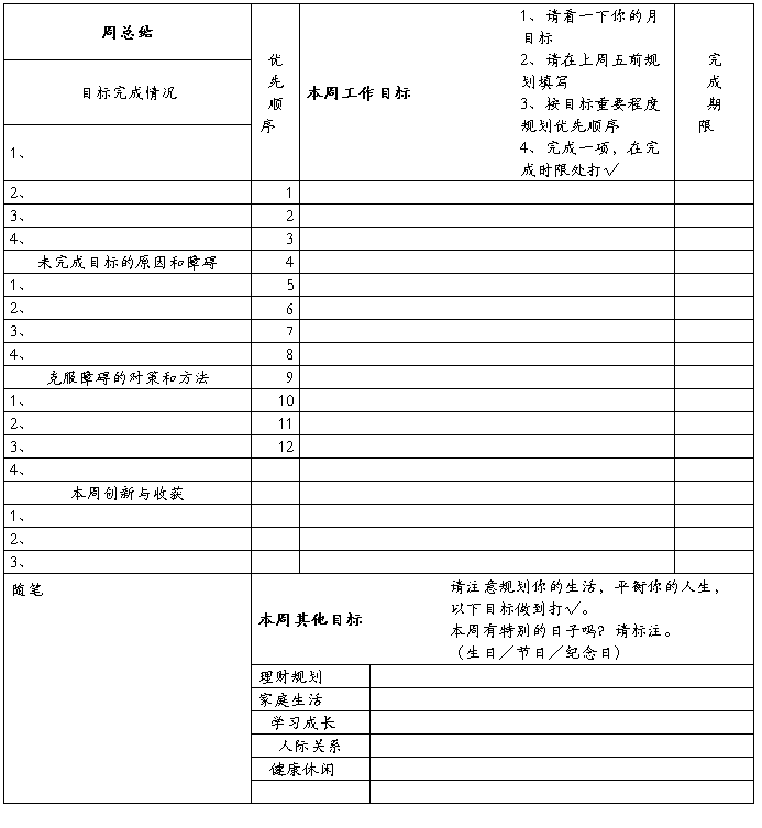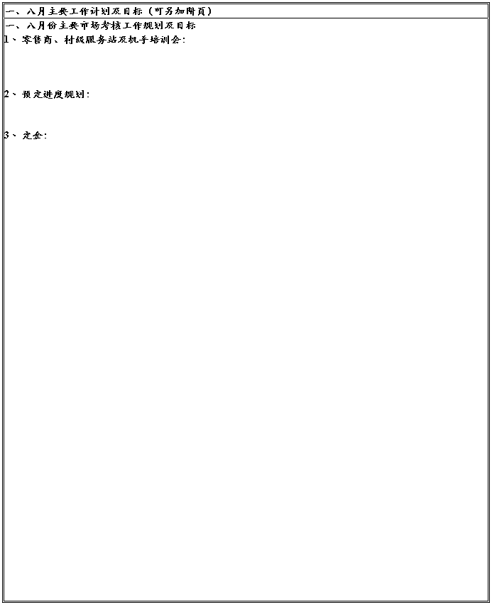 2、 目标计划以各个部门为单位,以部门职责为依据,对公司各部门当期工作任务进行的安排布置,是公司运行管理的基本组成部分。