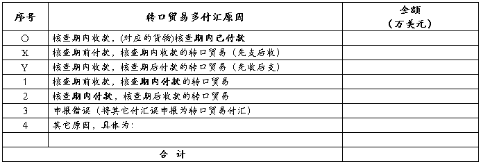 注:表6应满足等式:转口贸易收汇=O+X+Y;转口贸易付汇=O+1+2